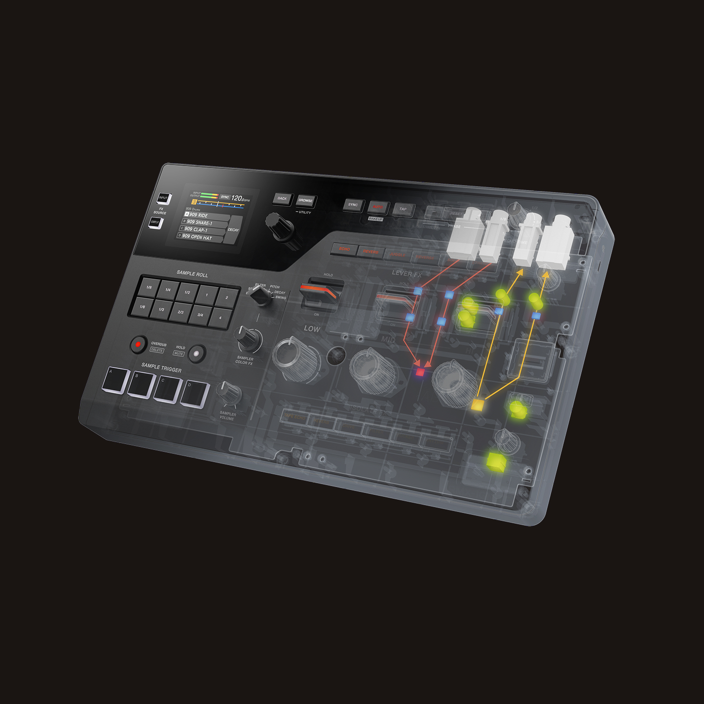 Create visually and sonically striking performances with the RMX-IGNITE by using the levers and large knobs to intuitively control its array of effects. Whether you’re playing in a club or on a live stream or video, you can captivate your audience by uniting sound and motion. It’s easy to make live remixes with the enhanced sampler section and you can add groove and expression to your samples with the new Groove Roll feature. And, with the latest DSP and high-grade audio converters, the unit delivers professional-level sound quality.